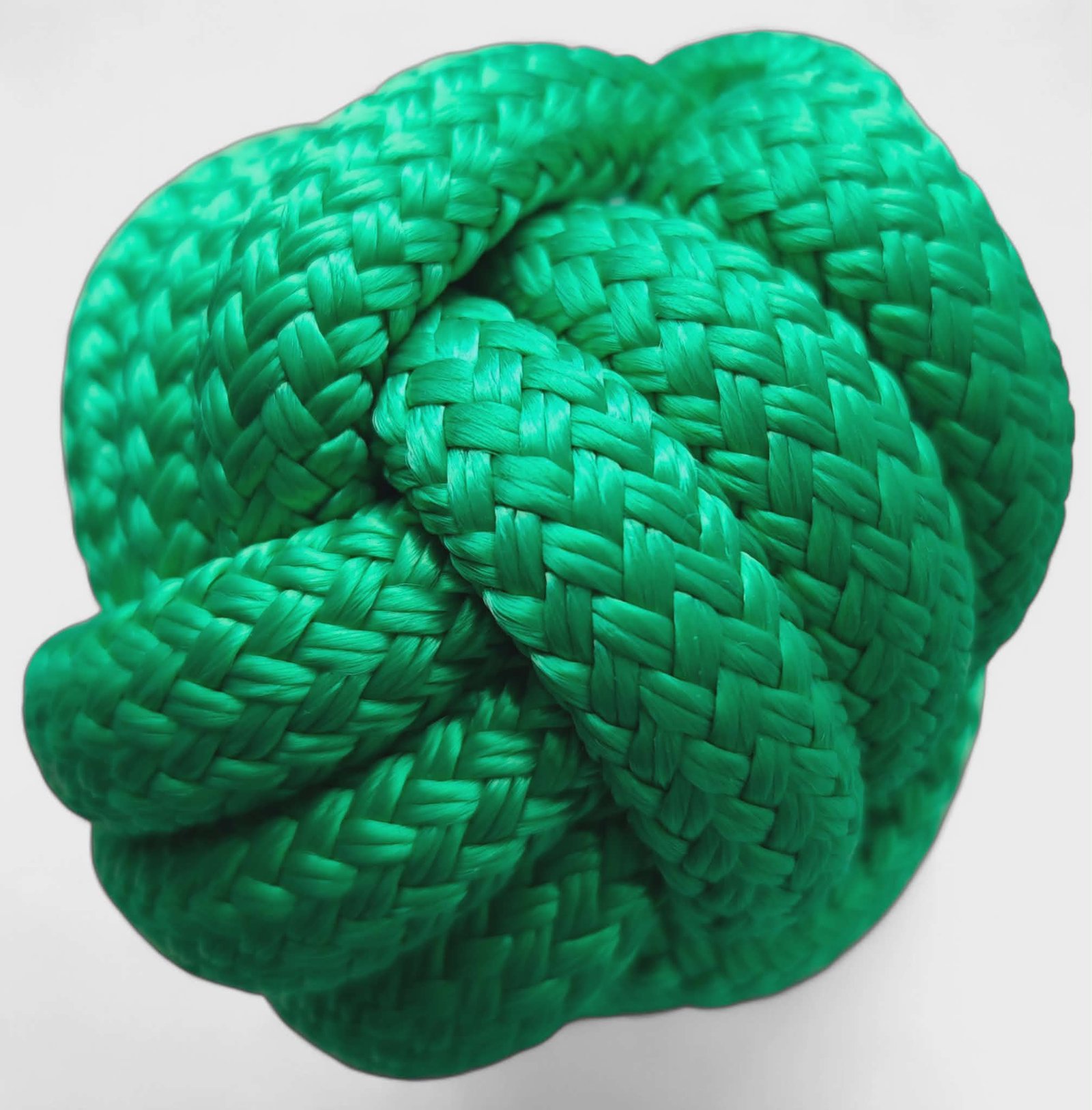 Entièrement faite main, elle est réalisée en corde PPM (polypropylène multifilament), reconnue pour sa très haute résistance, sa légèreté et sa durabilité. Ce matériau supporte les mâchoires les plus exigeantes et conserve sa tenue dans le temps, même lors d’une utilisation intensive.